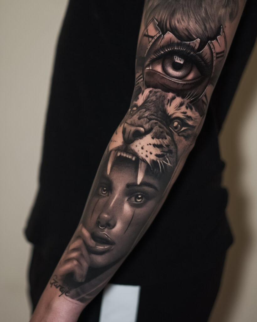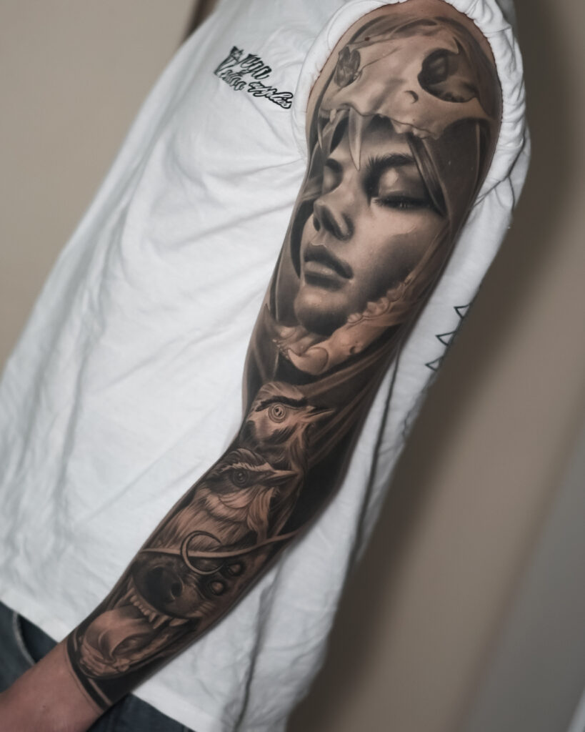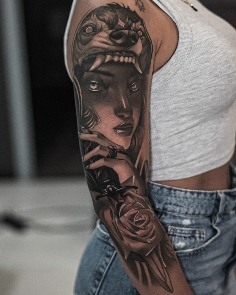 Comencé a tatuar a los 17 años y, con el tiempo, exploré distintos estilos como el neotradicional, fine line, blackwork y dot work. Esa búsqueda me llevó a consolidar mi identidad en el black and gray, un estilo que me permite trabajar con profundidad, elegancia y fuerza visual, creando piezas que trascienden lo inmediato y se vuelven atemporales.